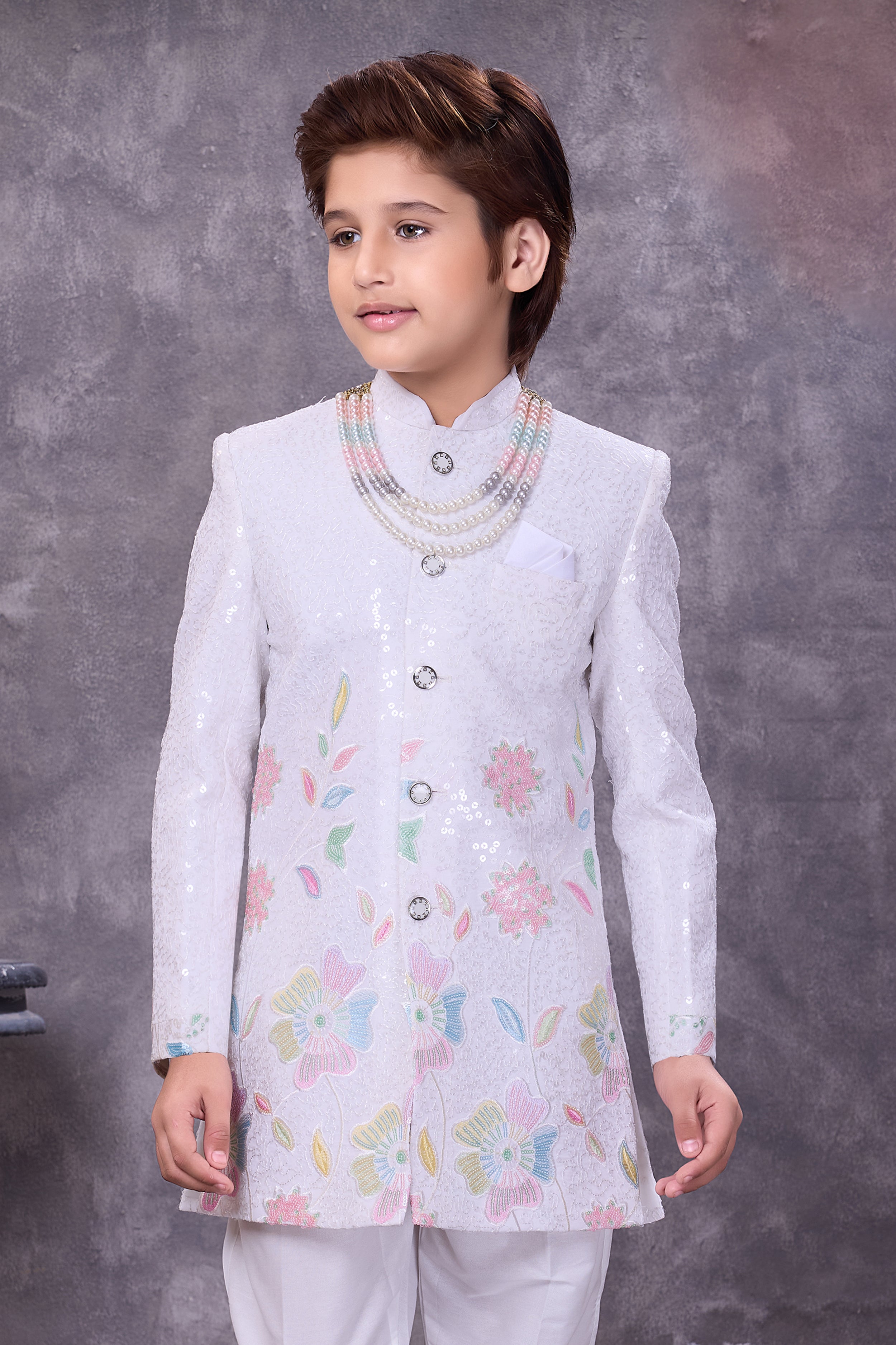 The detailed multi-color work enhances the charm of the pristine white base, creating a balanced and eye-catching look. Comfortable yet stylish, this Indo-Western set is ideal for those who appreciate refined elegance with a modern twist.
