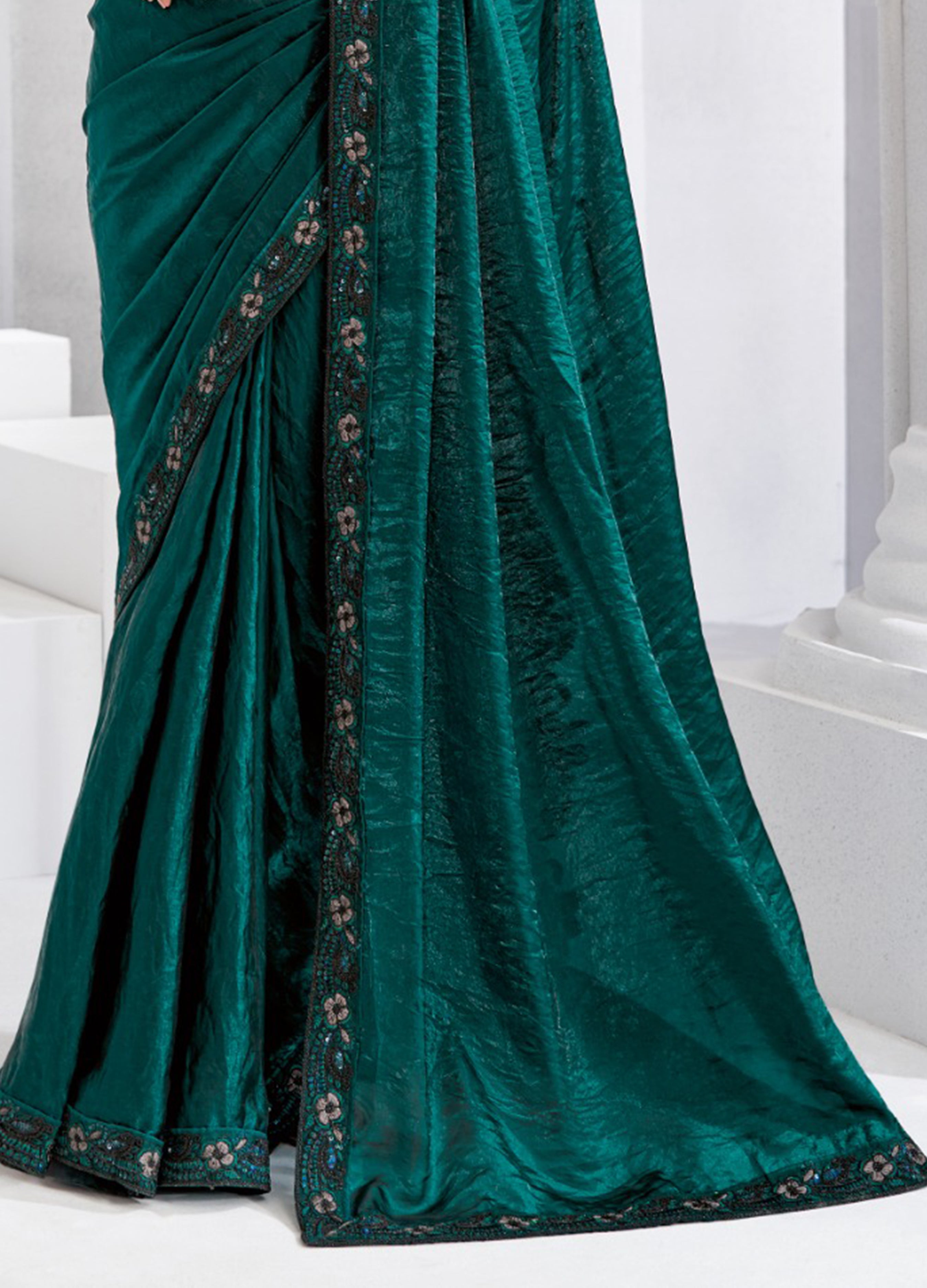 Teal Gree Embroidered Trim Organza Saree